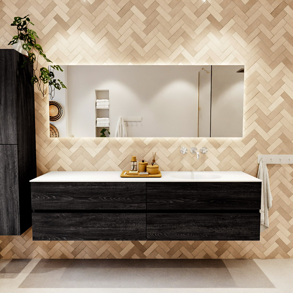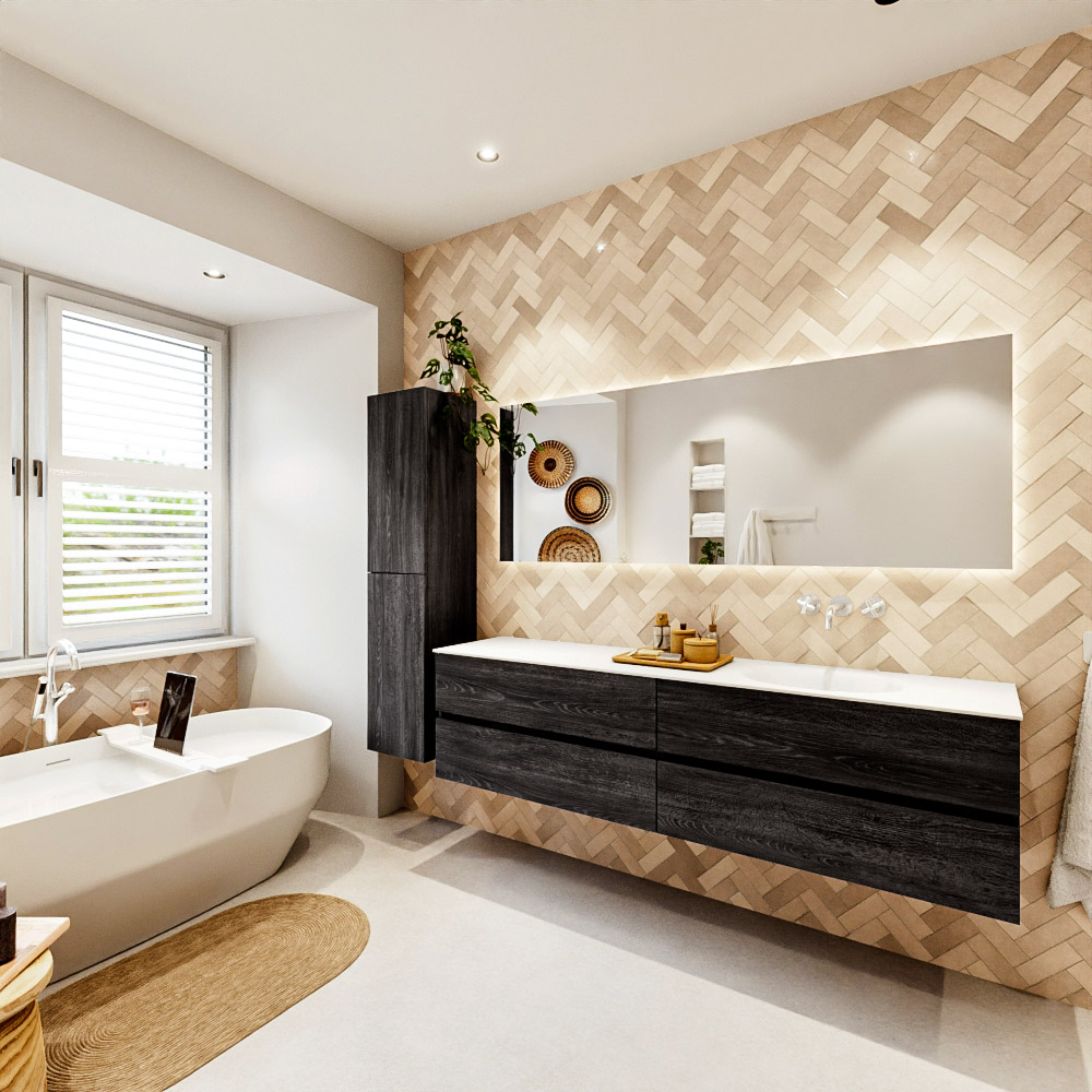 Ya sea que elija un color o un acabado de madera, un mueble de baño a medida, con o sin agujeros para grifos, el conjunto de muebles de baño Vica lo tiene todo. Con la serie Vica, puede elegir entre 3 modelos de lavabos: CLOUD y MOON en Solid Surface, con opciones de lavabo a la derecha, izquierda, en el medio o doble, y con o sin agujeros para grifos. También está el lavabo de cerámica DENIA con opciones en el medio y doble. El conjunto de muebles de baño Vica está disponible en una amplia gama de tamaños estándar, desde 60 cm hasta 200 cm, que aumentan en incrementos de 10 cm. El mueble de baño Vica está disponible en hasta 25 colores, incluyendo nuestros colores especiales Oro y Plata. Si no encuentra el tamaño o color ideal, siempre es posible hacer un pedido a medida. También puede coordinar su baño completo con columnas, bañeras, nichos y accesorios, todos en el mismo color. Con el conjunto de muebles de baño Vica, tendrá un mueble fantástico que completa su baño.