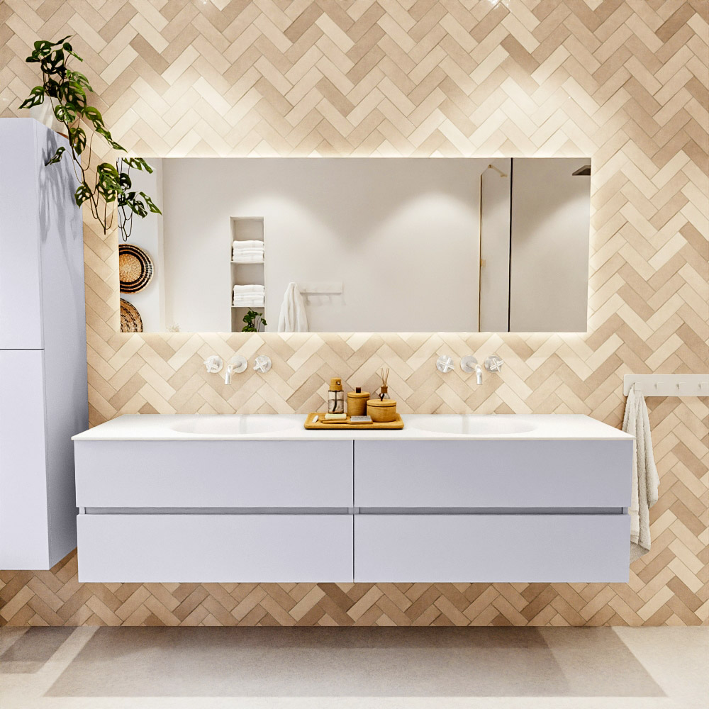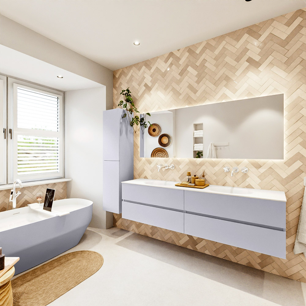 Ya sea que elija un color o un acabado de madera, un mueble de baño a medida, con o sin agujeros para grifos, el conjunto de muebles de baño Vica lo tiene todo. Con la serie Vica, puede elegir entre 3 modelos de lavabos: CLOUD y MOON en Solid Surface, con opciones de lavabo a la derecha, izquierda, en el medio o doble, y con o sin agujeros para grifos. También está el lavabo de cerámica DENIA con opciones en el medio y doble. El conjunto de muebles de baño Vica está disponible en una amplia gama de tamaños estándar, desde 60 cm hasta 200 cm, que aumentan en incrementos de 10 cm. El mueble de baño Vica está disponible en hasta 25 colores, incluyendo nuestros colores especiales Oro y Plata. Si no encuentra el tamaño o color ideal, siempre es posible hacer un pedido a medida. También puede coordinar su baño completo con columnas, bañeras, nichos y accesorios, todos en el mismo color. Con el conjunto de muebles de baño Vica, tendrá un mueble fantástico que completa su baño.