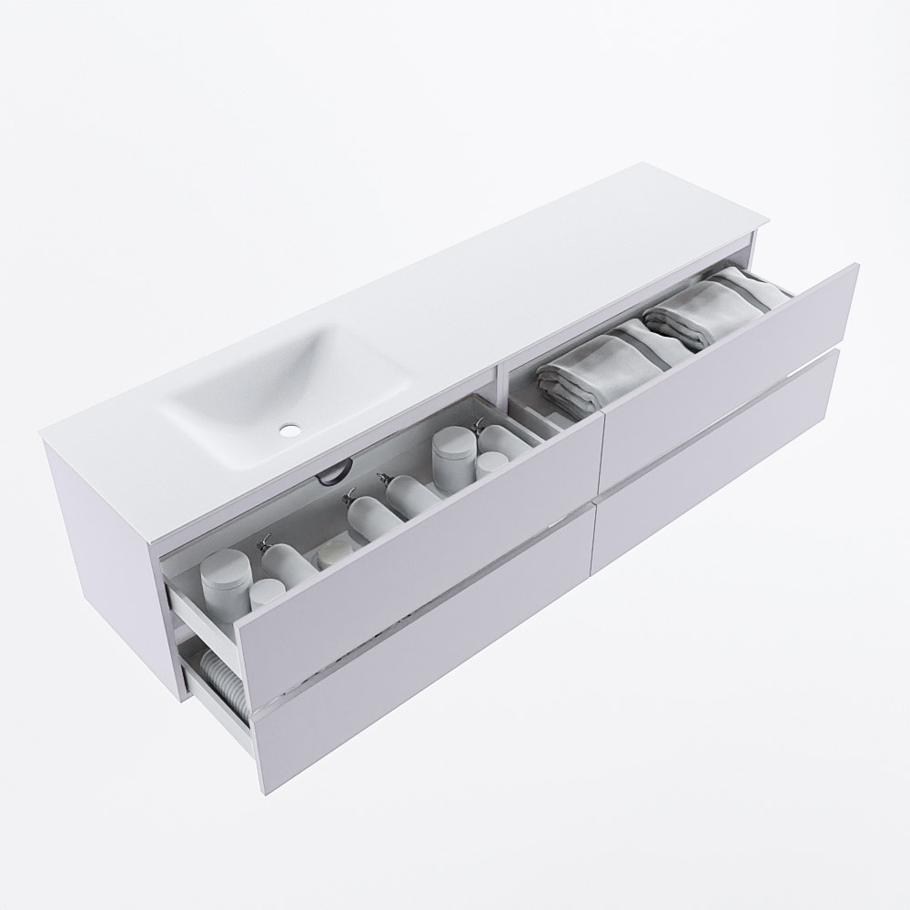 Ya sea que elija un color o un acabado de madera, un mueble de baño a medida, con o sin agujeros para grifos, el conjunto de muebles de baño Vica lo tiene todo. Con la serie Vica, puede elegir entre 3 modelos de lavabos: CLOUD y MOON en Solid Surface, con opciones de lavabo a la derecha, izquierda, en el medio o doble, y con o sin agujeros para grifos. También está el lavabo de cerámica DENIA con opciones en el medio y doble. El conjunto de muebles de baño Vica está disponible en una amplia gama de tamaños estándar, desde 60 cm hasta 200 cm, que aumentan en incrementos de 10 cm. El mueble de baño Vica está disponible en hasta 25 colores, incluyendo nuestros colores especiales Oro y Plata. Si no encuentra el tamaño o color ideal, siempre es posible hacer un pedido a medida. También puede coordinar su baño completo con columnas, bañeras, nichos y accesorios, todos en el mismo color. Con el conjunto de muebles de baño Vica, tendrá un mueble fantástico que completa su baño.