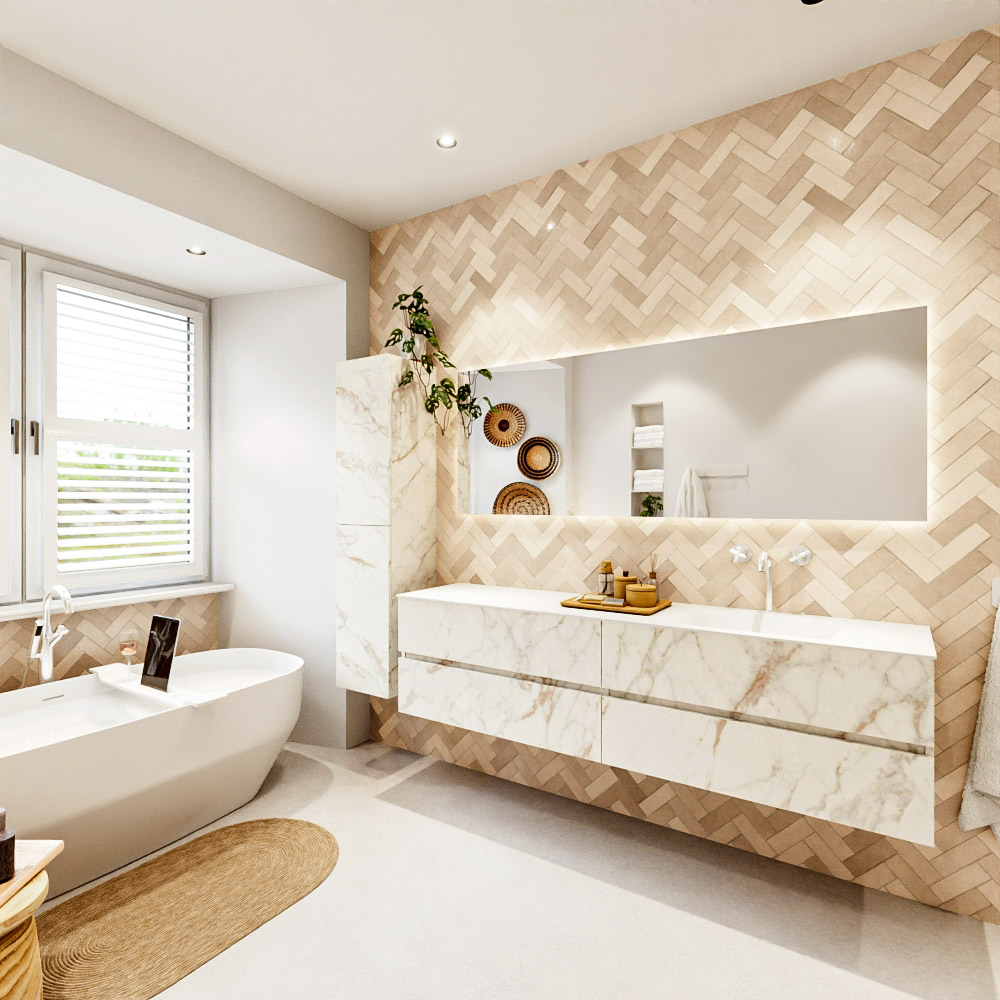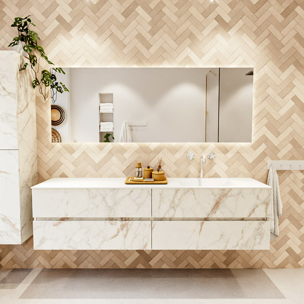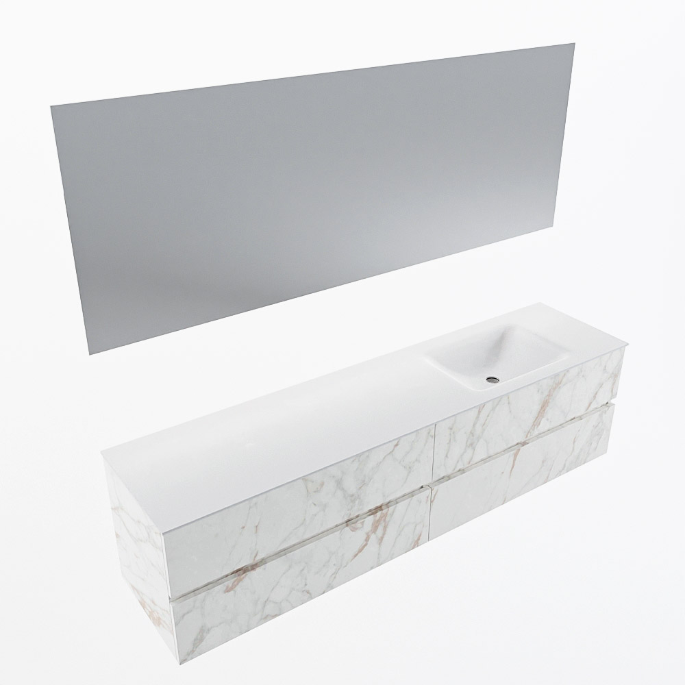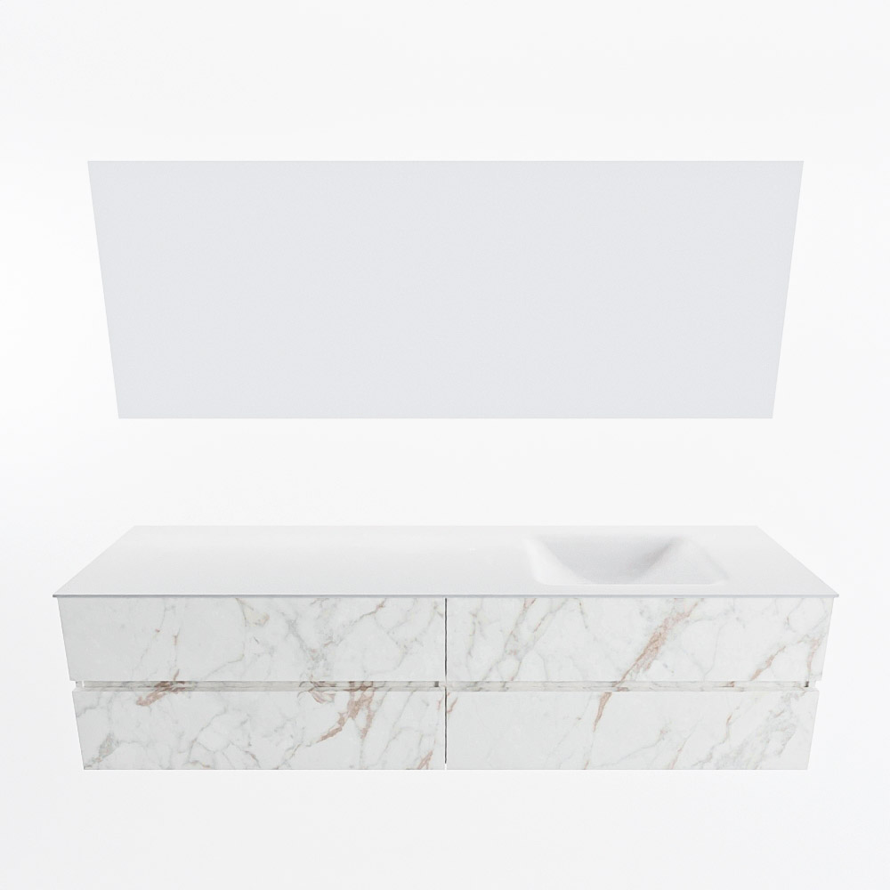 MONDIAZ VICA 190cm mueble de baño Carrara 4 cajones. Lavabo CLOUD Derecho 1 orificio color Talc con espejo LED.