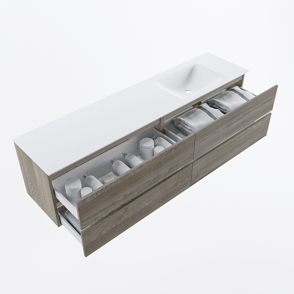 Ya sea que elija un color o un acabado de madera, un mueble de baño a medida, con o sin agujeros para grifos, el conjunto de muebles de baño Vica lo tiene todo. Con la serie Vica, puede elegir entre 3 modelos de lavabos: CLOUD y MOON en Solid Surface, con opciones de lavabo a la derecha, izquierda, en el medio o doble, y con o sin agujeros para grifos. También está el lavabo de cerámica DENIA con opciones en el medio y doble. El conjunto de muebles de baño Vica está disponible en una amplia gama de tamaños estándar, desde 60 cm hasta 200 cm, que aumentan en incrementos de 10 cm. El mueble de baño Vica está disponible en hasta 25 colores, incluyendo nuestros colores especiales Oro y Plata. Si no encuentra el tamaño o color ideal, siempre es posible hacer un pedido a medida. También puede coordinar su baño completo con columnas, bañeras, nichos y accesorios, todos en el mismo color. Con el conjunto de muebles de baño Vica, tendrá un mueble fantástico que completa su baño.