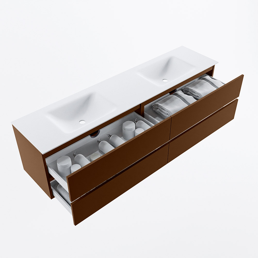 Ya sea que elija un color o un acabado de madera, un mueble de baño a medida, con o sin agujeros para grifos, el conjunto de muebles de baño Vica lo tiene todo. Con la serie Vica, puede elegir entre 3 modelos de lavabos: CLOUD y MOON en Solid Surface, con opciones de lavabo a la derecha, izquierda, en el medio o doble, y con o sin agujeros para grifos. También está el lavabo de cerámica DENIA con opciones en el medio y doble. El conjunto de muebles de baño Vica está disponible en una amplia gama de tamaños estándar, desde 60 cm hasta 200 cm, que aumentan en incrementos de 10 cm. El mueble de baño Vica está disponible en hasta 25 colores, incluyendo nuestros colores especiales Oro y Plata. Si no encuentra el tamaño o color ideal, siempre es posible hacer un pedido a medida. También puede coordinar su baño completo con columnas, bañeras, nichos y accesorios, todos en el mismo color. Con el conjunto de muebles de baño Vica, tendrá un mueble fantástico que completa su baño.