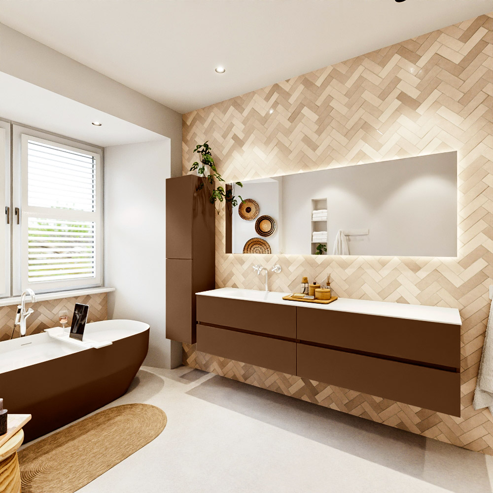 Ya sea que elija un color o un acabado de madera, un mueble de baño a medida, con o sin agujeros para grifos, el conjunto de muebles de baño Vica lo tiene todo. Con la serie Vica, puede elegir entre 3 modelos de lavabos: CLOUD y MOON en Solid Surface, con opciones de lavabo a la derecha, izquierda, en el medio o doble, y con o sin agujeros para grifos. También está el lavabo de cerámica DENIA con opciones en el medio y doble. El conjunto de muebles de baño Vica está disponible en una amplia gama de tamaños estándar, desde 60 cm hasta 200 cm, que aumentan en incrementos de 10 cm. El mueble de baño Vica está disponible en hasta 25 colores, incluyendo nuestros colores especiales Oro y Plata. Si no encuentra el tamaño o color ideal, siempre es posible hacer un pedido a medida. También puede coordinar su baño completo con columnas, bañeras, nichos y accesorios, todos en el mismo color. Con el conjunto de muebles de baño Vica, tendrá un mueble fantástico que completa su baño.