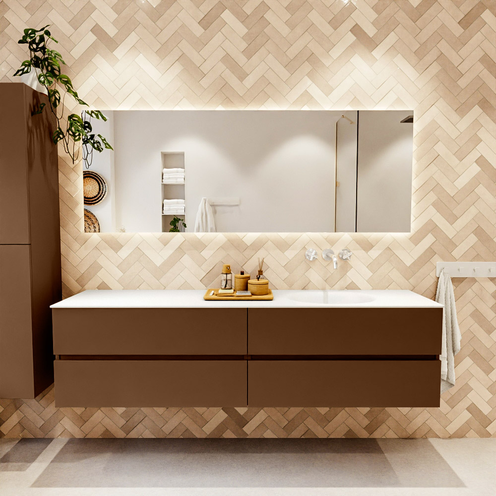 En español: Ya sea que elija un color o un acabado de madera, un mueble de baño a medida, con o sin agujeros para grifos, el conjunto de muebles de baño Vica lo tiene todo. Con la serie Vica, puede elegir entre 3 modelos de lavabos: CLOUD y MOON en Solid Surface, con opciones de lavabo a la derecha, izquierda, en el medio o doble, y con o sin agujeros para grifos. También está el lavabo de cerámica DENIA con opciones en el medio y doble. El conjunto de muebles de baño Vica está disponible en una amplia gama de tamaños estándar, desde 60 cm hasta 200 cm, que aumentan en incrementos de 10 cm. El mueble de baño Vica está disponible en hasta 25 colores, incluyendo nuestros colores especiales Oro y Plata. Si no encuentra el tamaño o color ideal, siempre es posible hacer un pedido a medida. También puede coordinar su baño completo con columnas, bañeras, nichos y accesorios, todos en el mismo color. Con el conjunto de muebles de baño Vica, tendrá un mueble fantástico que completa su baño.