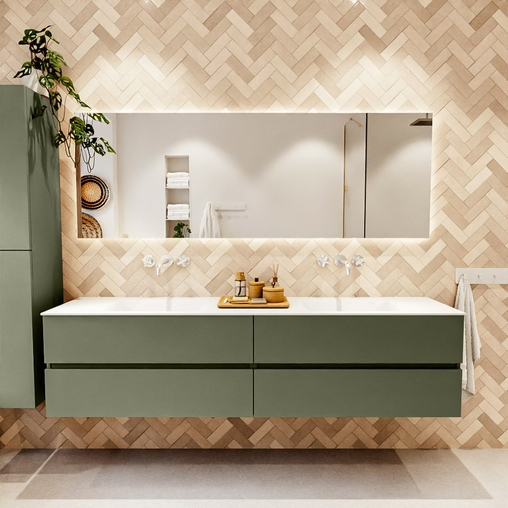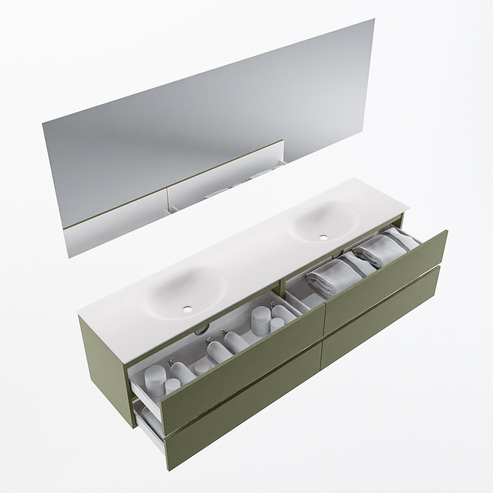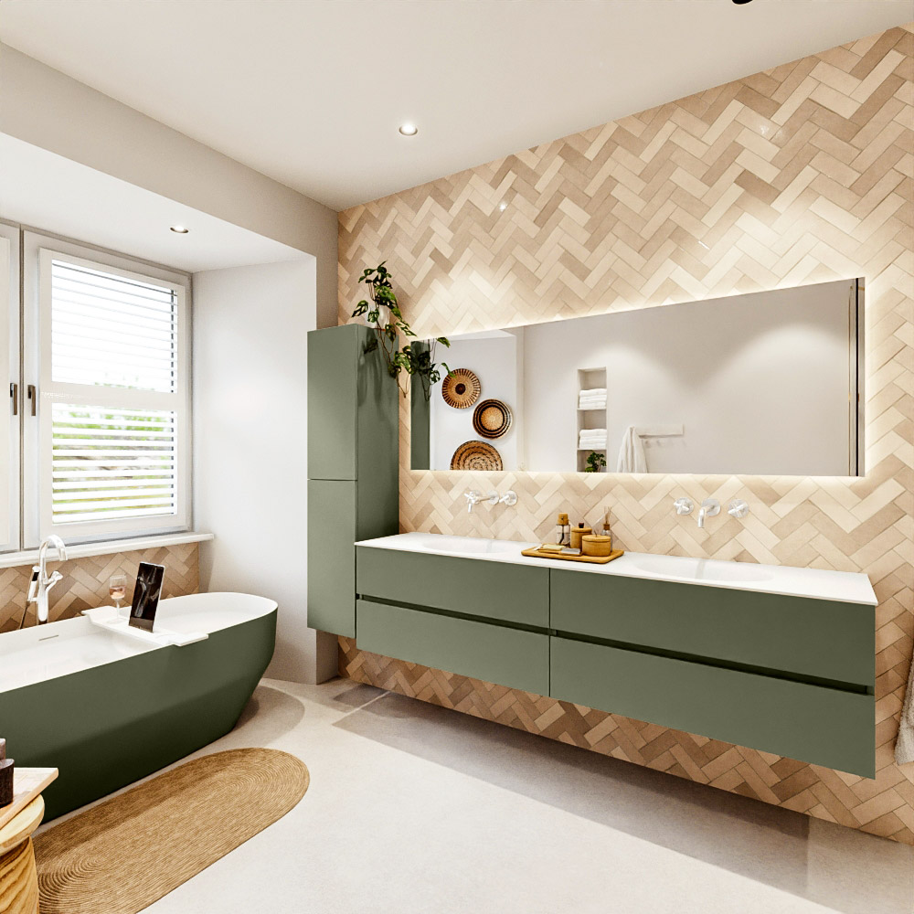 En español: Ya sea que elija un color o un acabado de madera, un mueble de baño a medida, con o sin agujeros para grifos, el conjunto de muebles de baño Vica lo tiene todo. Con la serie Vica, puede elegir entre 3 modelos de lavabos: CLOUD y MOON en Solid Surface, con opciones de lavabo a la derecha, izquierda, en el medio o doble, y con o sin agujeros para grifos. También está el lavabo de cerámica DENIA con opciones en el medio y doble. El conjunto de muebles de baño Vica está disponible en una amplia gama de tamaños estándar, desde 60 cm hasta 200 cm, que aumentan en incrementos de 10 cm. El mueble de baño Vica está disponible en hasta 25 colores, incluyendo nuestros colores especiales Oro y Plata. Si no encuentra el tamaño o color ideal, siempre es posible hacer un pedido a medida. También puede coordinar su baño completo con columnas, bañeras, nichos y accesorios, todos en el mismo color. Con el conjunto de muebles de baño Vica, tendrá un mueble fantástico que completa su baño.