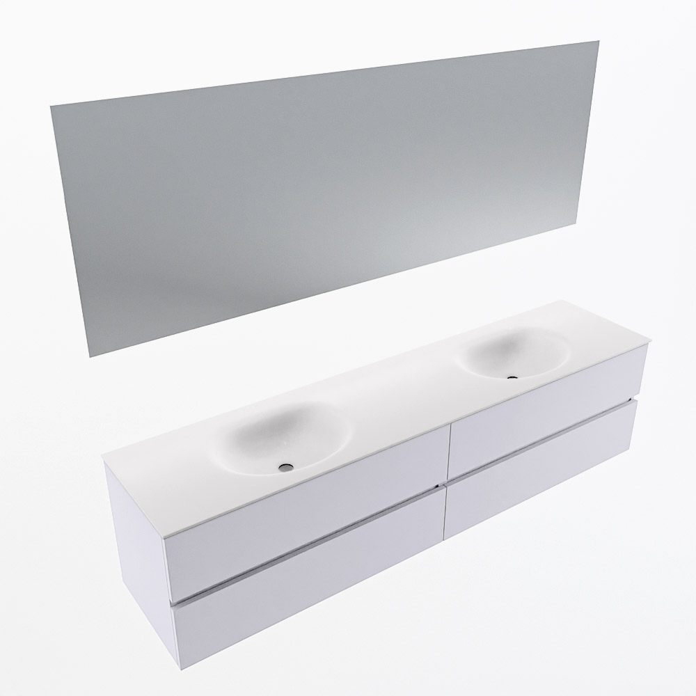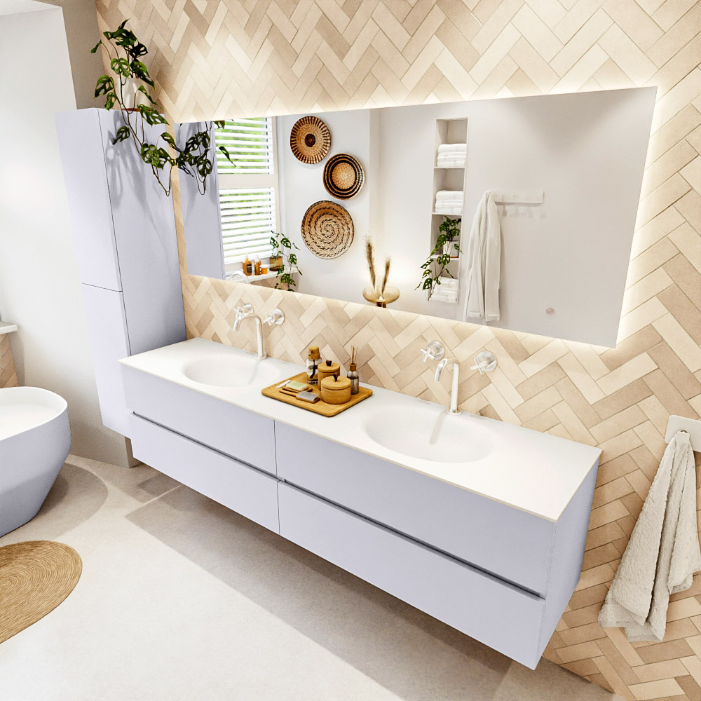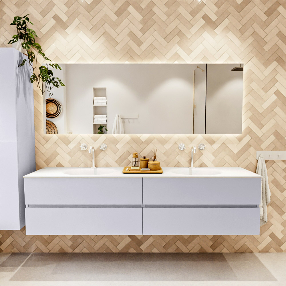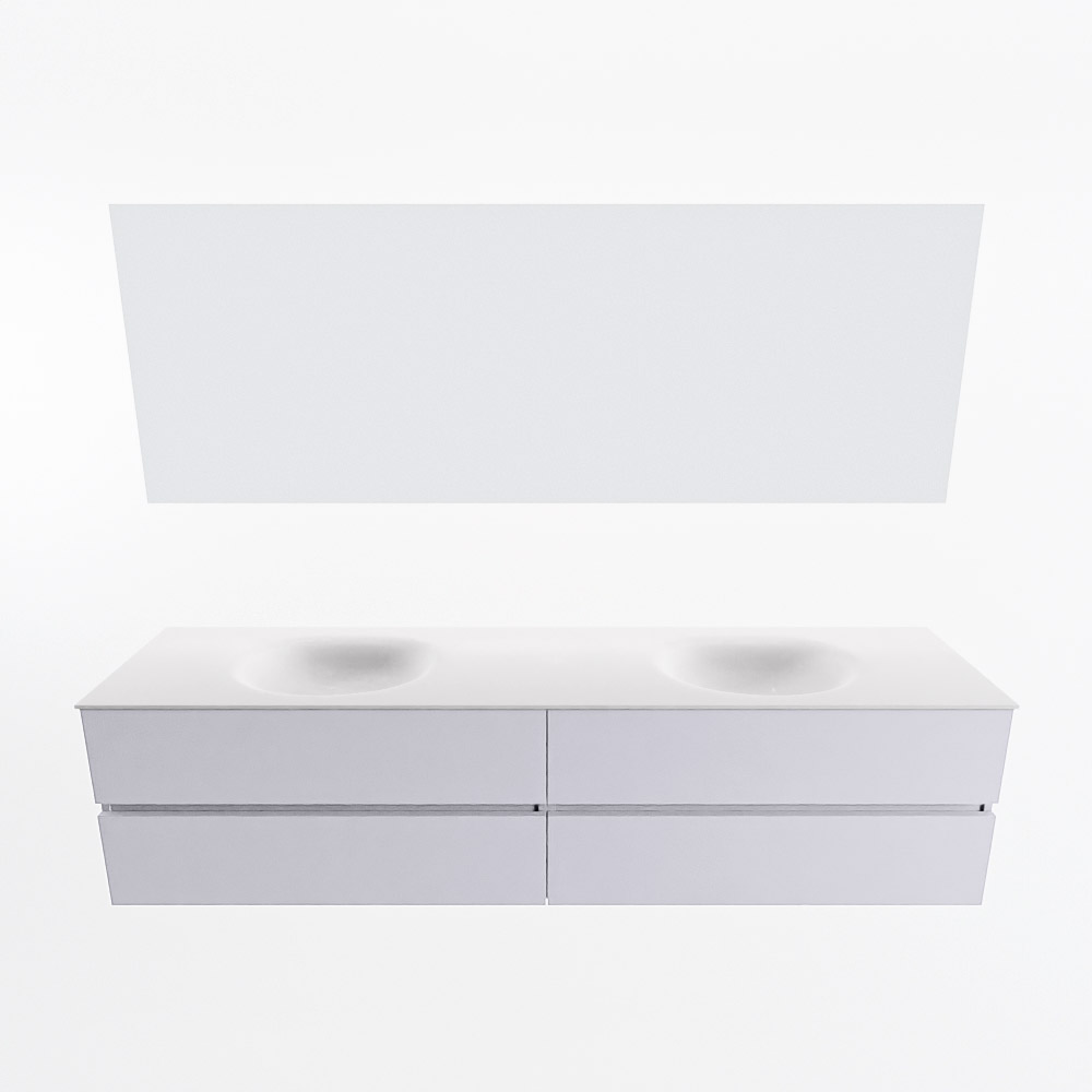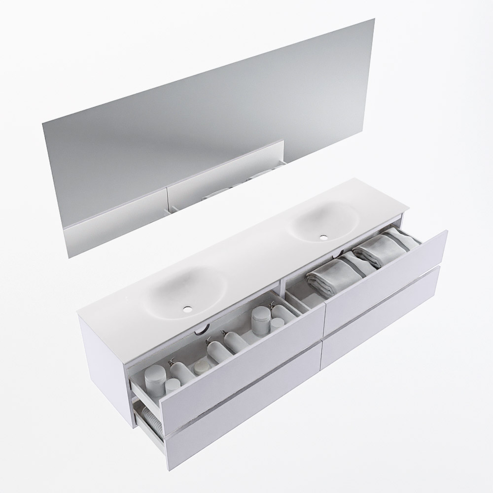 En español: Ya sea que elija un color o un acabado de madera, un mueble de baño a medida, con o sin agujeros para grifos, el conjunto de muebles de baño Vica lo tiene todo. Con la serie Vica, puede elegir entre 3 modelos de lavabos: CLOUD y MOON en Solid Surface, con opciones de lavabo a la derecha, izquierda, en el medio o doble, y con o sin agujeros para grifos. También está el lavabo de cerámica DENIA con opciones en el medio y doble. El conjunto de muebles de baño Vica está disponible en una amplia gama de tamaños estándar, desde 60 cm hasta 200 cm, que aumentan en incrementos de 10 cm. El mueble de baño Vica está disponible en hasta 25 colores, incluyendo nuestros colores especiales Oro y Plata. Si no encuentra el tamaño o color ideal, siempre es posible hacer un pedido a medida. También puede coordinar su baño completo con columnas, bañeras, nichos y accesorios, todos en el mismo color. Con el conjunto de muebles de baño Vica, tendrá un mueble fantástico que completa su baño.