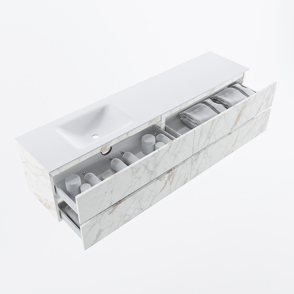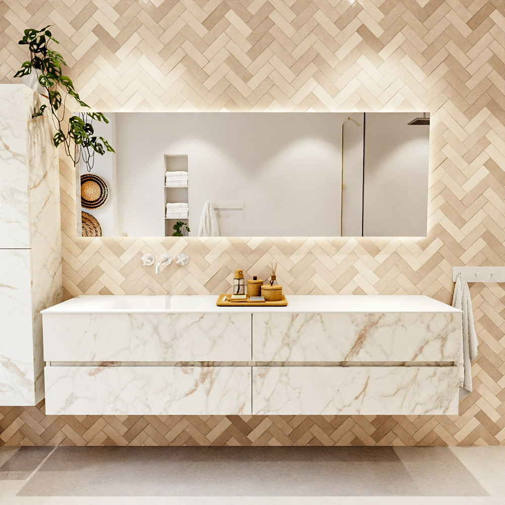 Ya sea que elija un color o un acabado de madera, un mueble de baño a medida, con o sin agujeros para grifos, el conjunto de muebles de baño Vica lo tiene todo. Con la serie Vica, puede elegir entre 3 modelos de lavabos: CLOUD y MOON en Solid Surface, con opciones de lavabo a la derecha, izquierda, en el medio o doble, y con o sin agujeros para grifos. También está el lavabo de cerámica DENIA con opciones en el medio y doble. El conjunto de muebles de baño Vica está disponible en una amplia gama de tamaños estándar, desde 60 cm hasta 200 cm, que aumentan en incrementos de 10 cm. El mueble de baño Vica está disponible en hasta 25 colores, incluyendo nuestros colores especiales Oro y Plata. Si no encuentra el tamaño o color ideal, siempre es posible hacer un pedido a medida. También puede coordinar su baño completo con columnas, bañeras, nichos y accesorios, todos en el mismo color. Con el conjunto de muebles de baño Vica, tendrá un mueble fantástico que completa su baño.