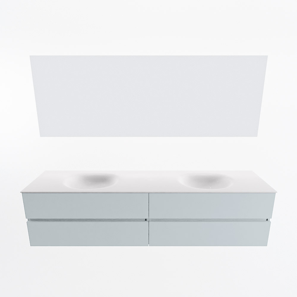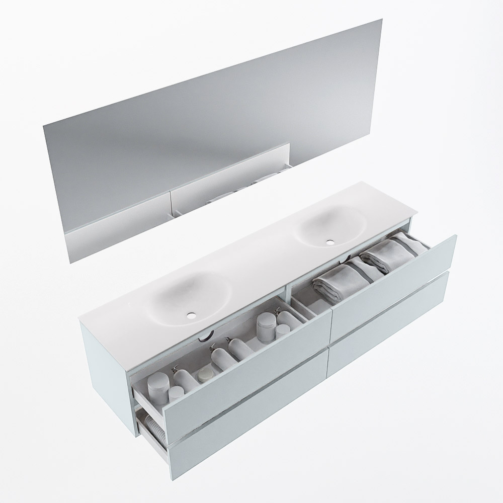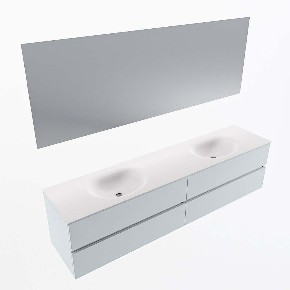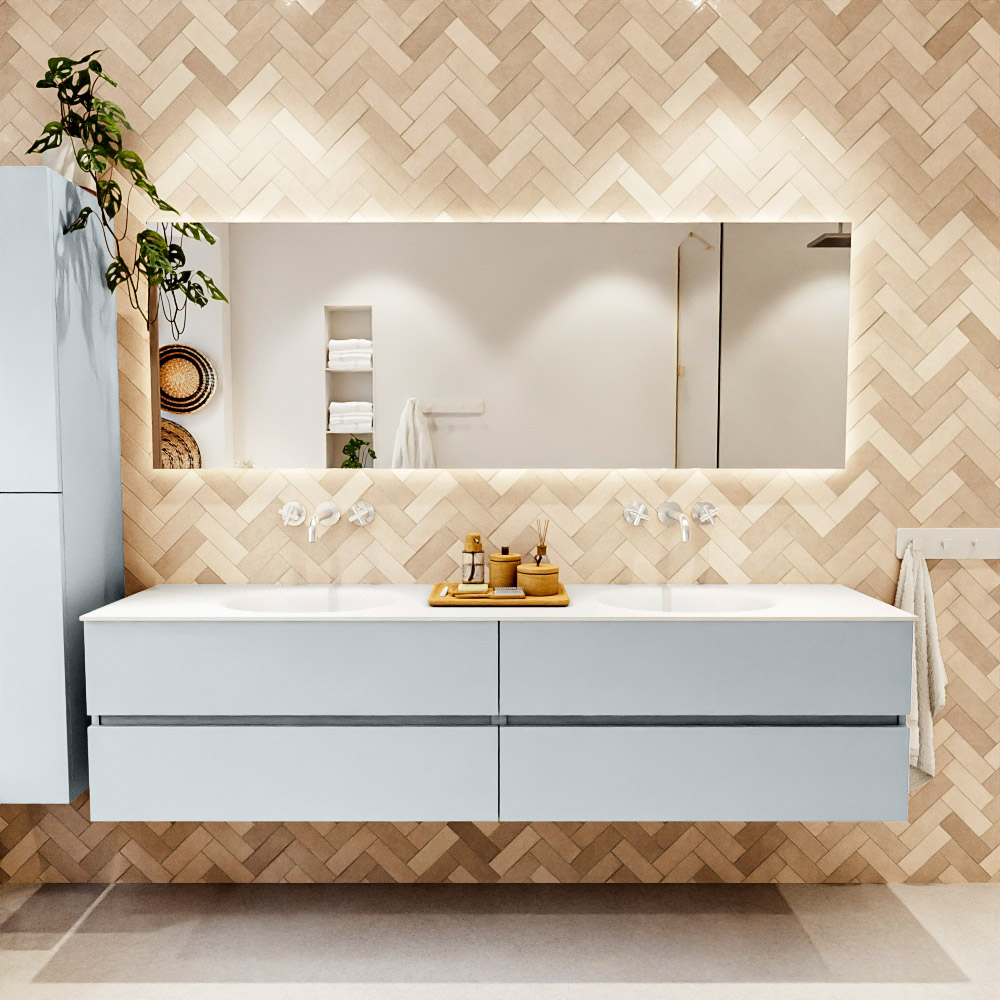 MONDIAZ VICA 200cm mueble de baño Clay 4 cajones. Lavabo MOON Doble sin orificio color Talc con espejo LED.