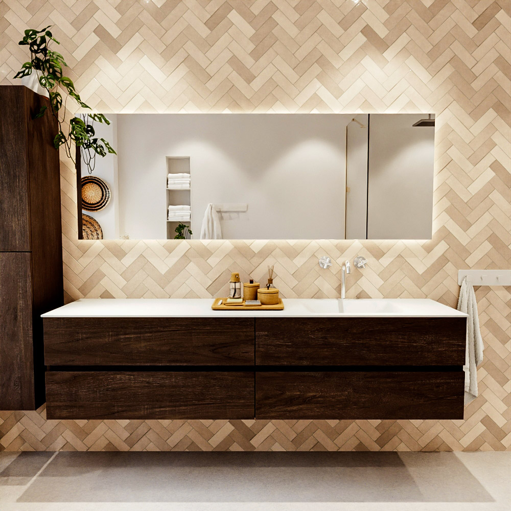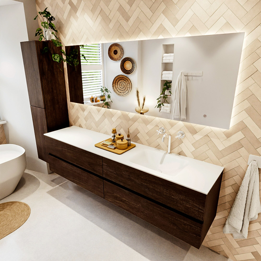 MONDIAZ VICA 200cm mueble de baño Dark Brown 4 cajones. Lavabo CLOUD Derecho 1 orificio, color Talc.