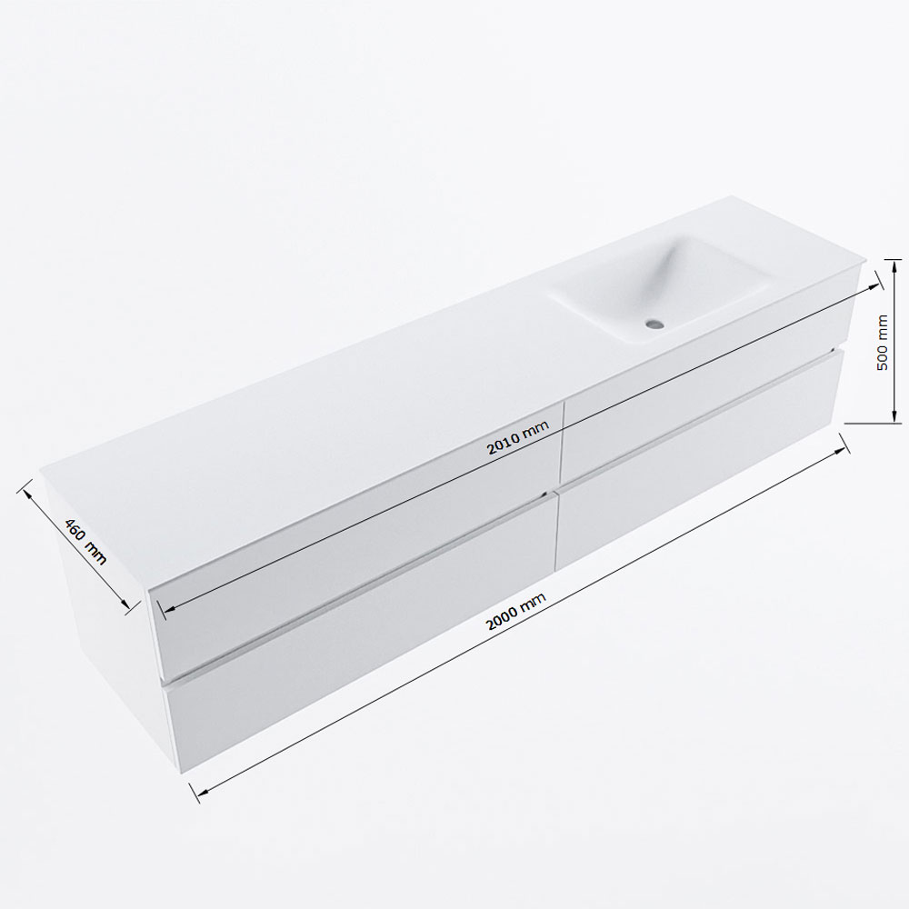 Ya sea que elija un color o un acabado de madera, un mueble de baño a medida, con o sin agujeros para grifos, el conjunto de muebles de baño Vica lo tiene todo. Con la serie Vica, puede elegir entre 3 modelos de lavabos: CLOUD y MOON en Solid Surface, con opciones de lavabo a la derecha, izquierda, en el medio o doble, y con o sin agujeros para grifos. También está el lavabo de cerámica DENIA con opciones en el medio y doble. El conjunto de muebles de baño Vica está disponible en una amplia gama de tamaños estándar, desde 60 cm hasta 200 cm, que aumentan en incrementos de 10 cm. El mueble de baño Vica está disponible en hasta 25 colores, incluyendo nuestros colores especiales Oro y Plata. Si no encuentra el tamaño o color ideal, siempre es posible hacer un pedido a medida. También puede coordinar su baño completo con columnas, bañeras, nichos y accesorios, todos en el mismo color. Con el conjunto de muebles de baño Vica, tendrá un mueble fantástico que completa su baño.