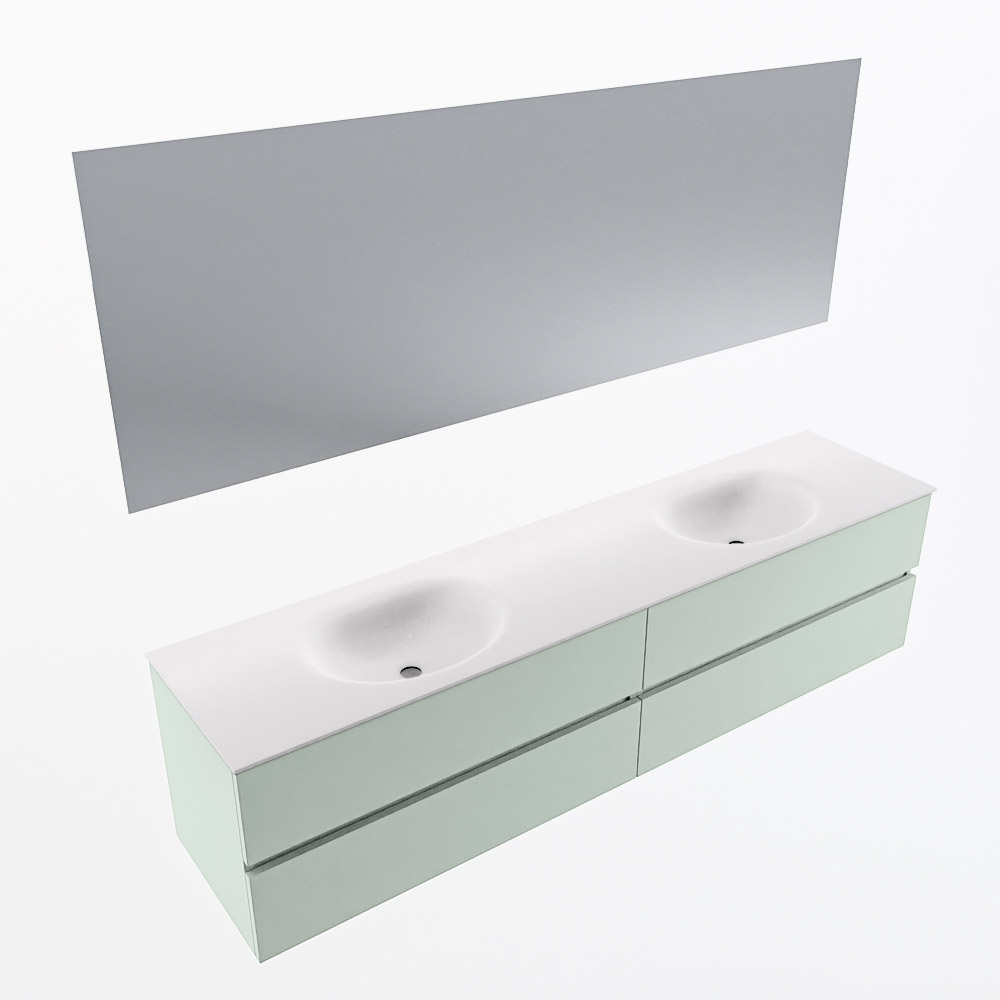 En español: Ya sea que elija un color o un acabado de madera, un mueble de baño a medida, con o sin agujeros para grifos, el conjunto de muebles de baño Vica lo tiene todo. Con la serie Vica, puede elegir entre 3 modelos de lavabos: CLOUD y MOON en Solid Surface, con opciones de lavabo a la derecha, izquierda, en el medio o doble, y con o sin agujeros para grifos. También está el lavabo de cerámica DENIA con opciones en el medio y doble. El conjunto de muebles de baño Vica está disponible en una amplia gama de tamaños estándar, desde 60 cm hasta 200 cm, que aumentan en incrementos de 10 cm. El mueble de baño Vica está disponible en hasta 25 colores, incluyendo nuestros colores especiales Oro y Plata. Si no encuentra el tamaño o color ideal, siempre es posible hacer un pedido a medida. También puede coordinar su baño completo con columnas, bañeras, nichos y accesorios, todos en el mismo color. Con el conjunto de muebles de baño Vica, tendrá un mueble fantástico que completa su baño.