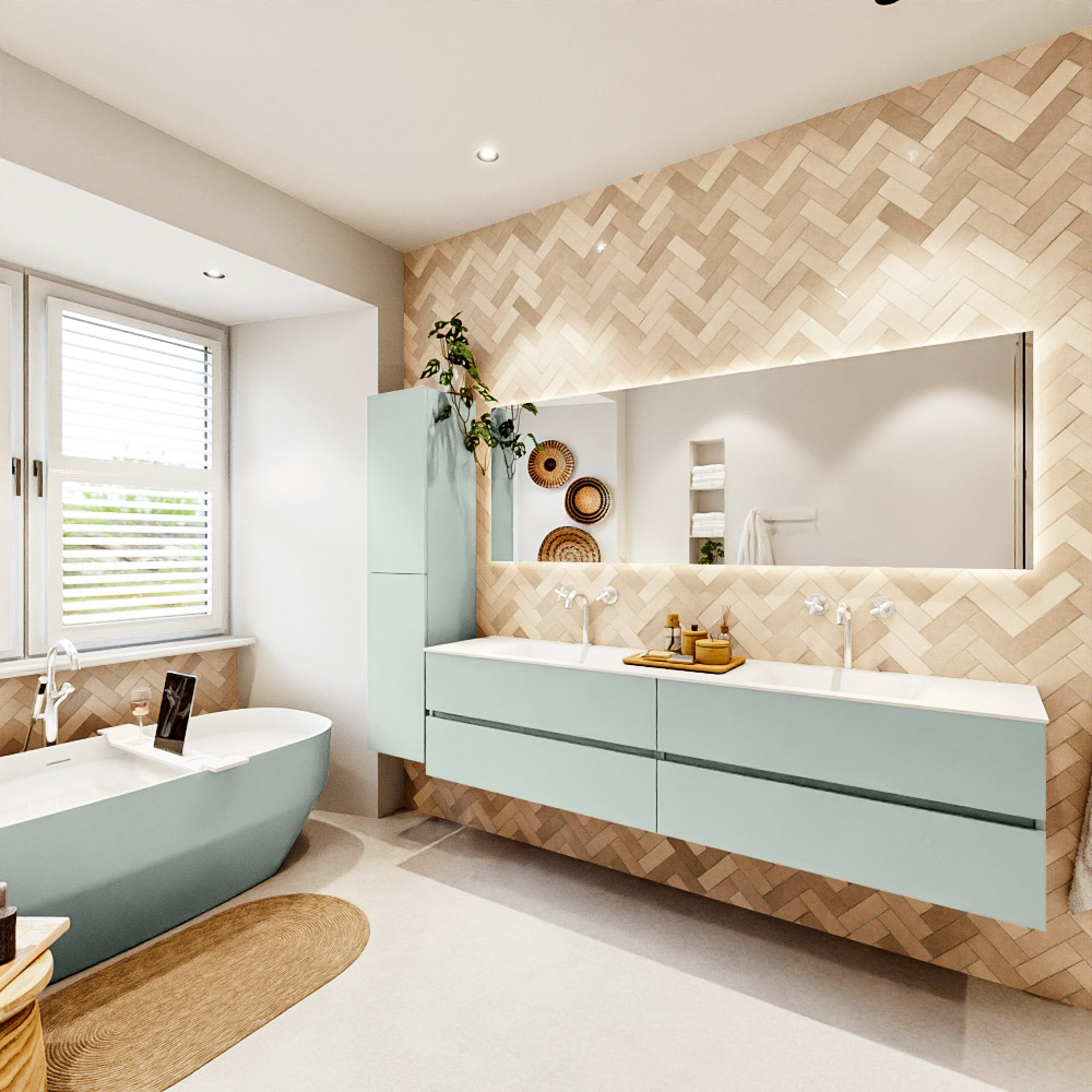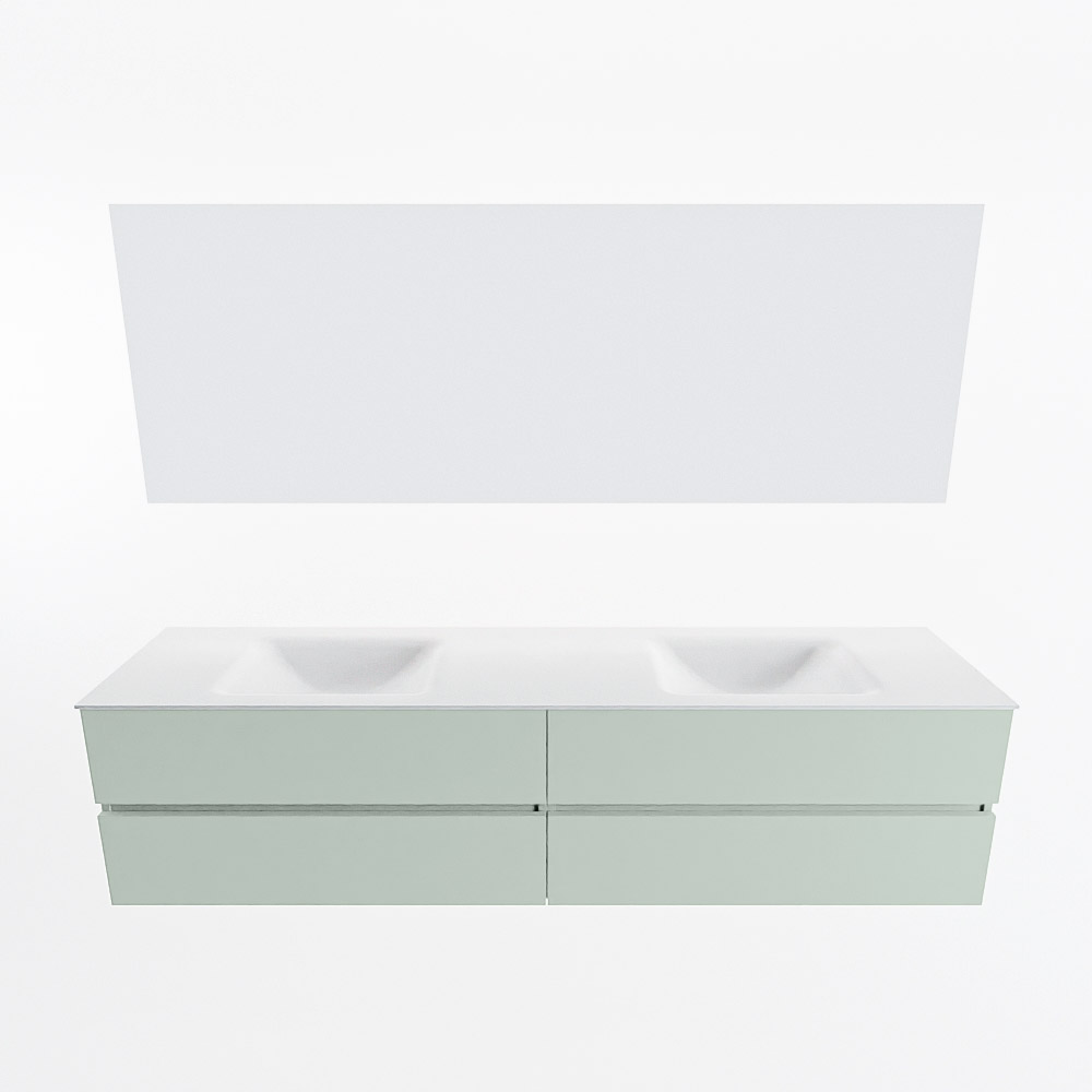 MONDIAZ VICA 200cm mueble de baño Greey 4 cajones. Lavabo CLOUD Doble 2 orificios color Talc con espejo LED.