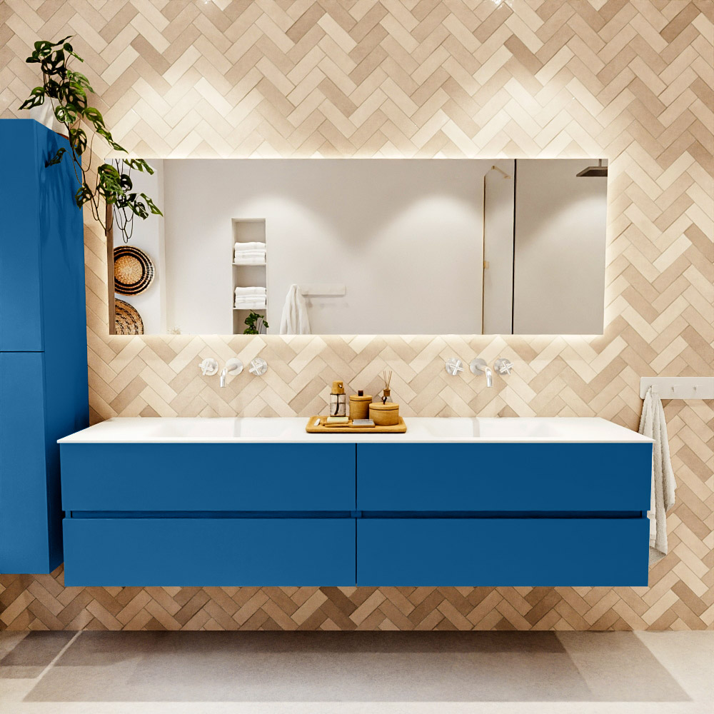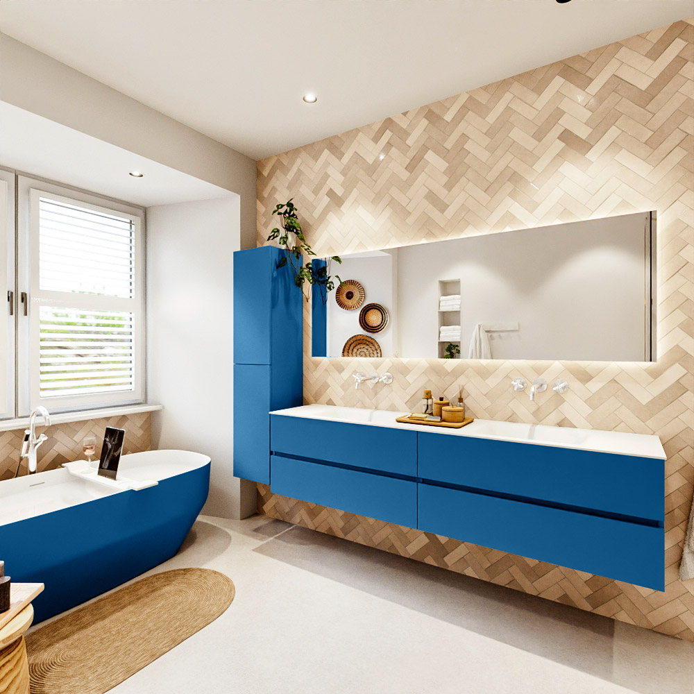Ya sea que elija un color o un acabado de madera, un mueble de baño a medida, con o sin agujeros para grifos, el conjunto de muebles de baño Vica lo tiene todo. Con la serie Vica, puede elegir entre 3 modelos de lavabos: CLOUD y MOON en Solid Surface, con opciones de lavabo a la derecha, izquierda, en el medio o doble, y con o sin agujeros para grifos. También está el lavabo de cerámica DENIA con opciones en el medio y doble. El conjunto de muebles de baño Vica está disponible en una amplia gama de tamaños estándar, desde 60 cm hasta 200 cm, que aumentan en incrementos de 10 cm. El mueble de baño Vica está disponible en hasta 25 colores, incluyendo nuestros colores especiales Oro y Plata. Si no encuentra el tamaño o color ideal, siempre es posible hacer un pedido a medida. También puede coordinar su baño completo con columnas, bañeras, nichos y accesorios, todos en el mismo color. Con el conjunto de muebles de baño Vica, tendrá un mueble fantástico que completa su baño.