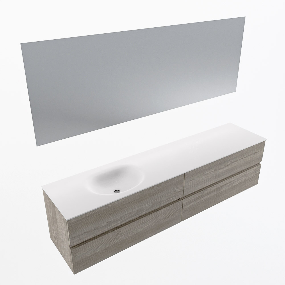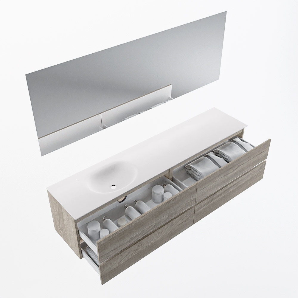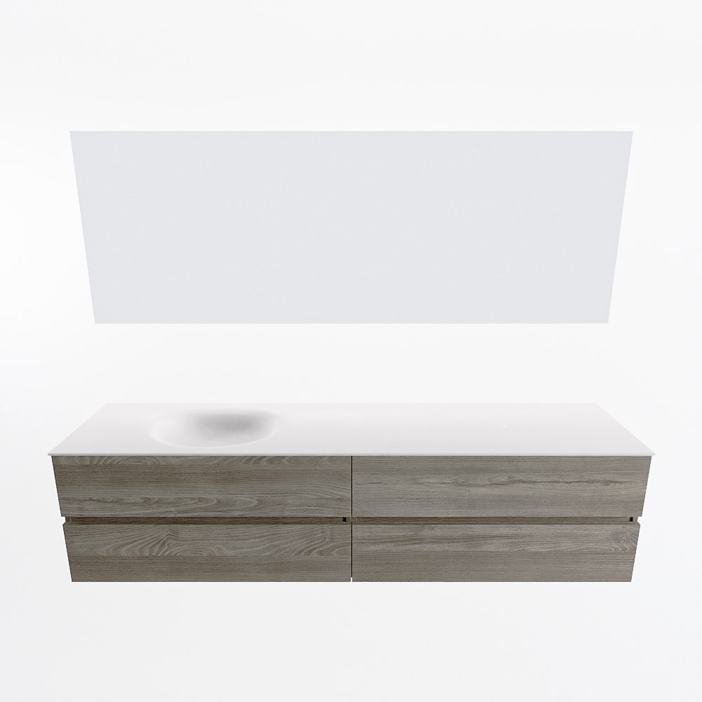 MONDIAZ VICA 200cm mueble de baño Light Brown Grey 4 cajones. Lavabo MOON Izquierda sin orificio color Talc con espejo LED.