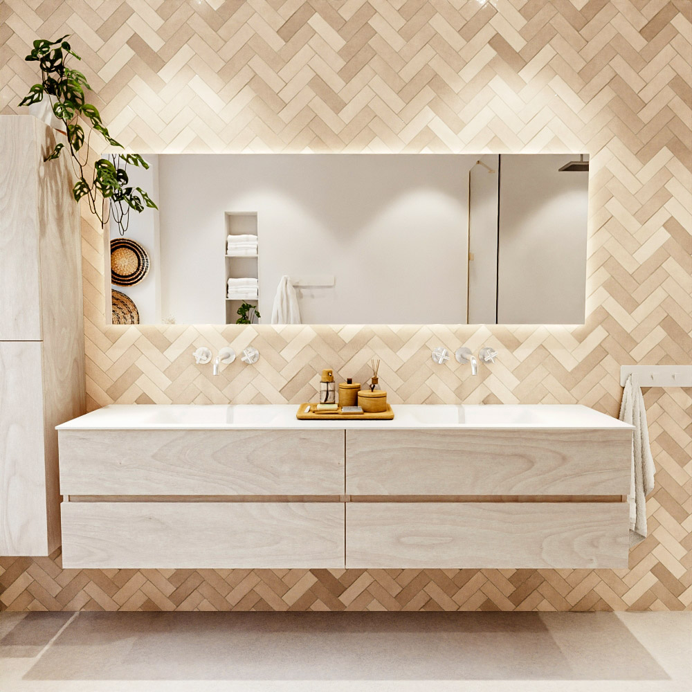 Ya sea que elija un color o un acabado de madera, un mueble de baño a medida, con o sin agujeros para grifos, el conjunto de muebles de baño Vica lo tiene todo. Con la serie Vica, puede elegir entre 3 modelos de lavabos: CLOUD y MOON en Solid Surface, con opciones de lavabo a la derecha, izquierda, en el medio o doble, y con o sin agujeros para grifos. También está el lavabo de cerámica DENIA con opciones en el medio y doble. El conjunto de muebles de baño Vica está disponible en una amplia gama de tamaños estándar, desde 60 cm hasta 200 cm, que aumentan en incrementos de 10 cm. El mueble de baño Vica está disponible en hasta 25 colores, incluyendo nuestros colores especiales Oro y Plata. Si no encuentra el tamaño o color ideal, siempre es posible hacer un pedido a medida. También puede coordinar su baño completo con columnas, bañeras, nichos y accesorios, todos en el mismo color. Con el conjunto de muebles de baño Vica, tendrá un mueble fantástico que completa su baño.