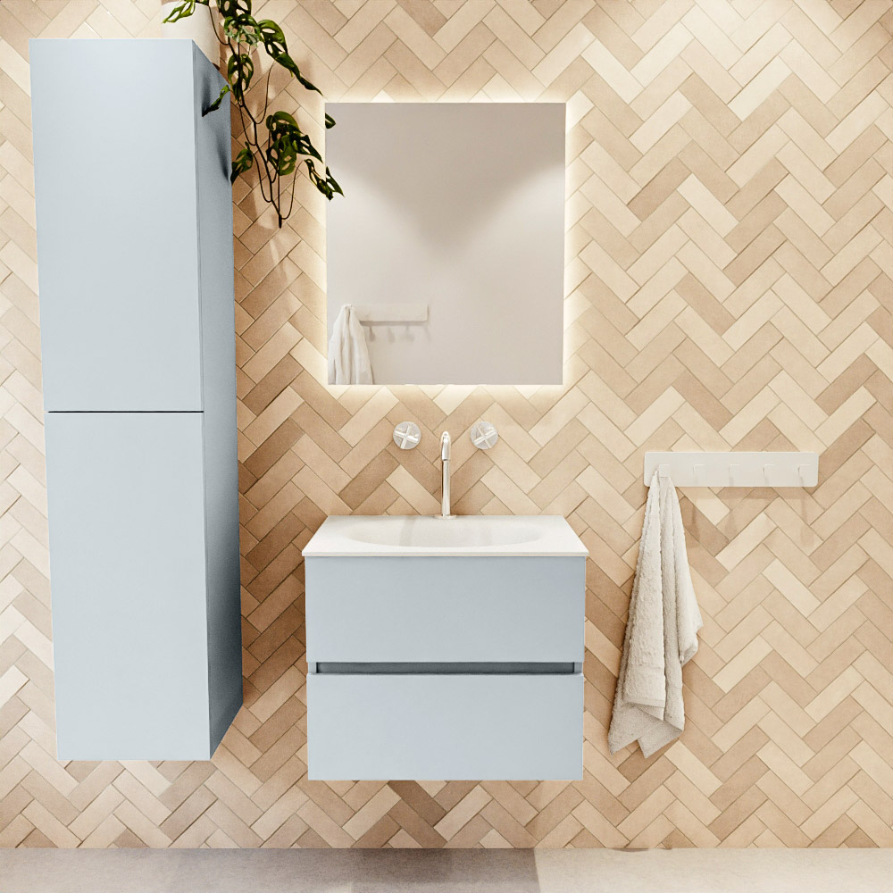 MONDIAZ VICA 60cm mueble de baño Clay 2 cajones. Lavabo MOON Centro 1 orificio color Talc con espejo LED.