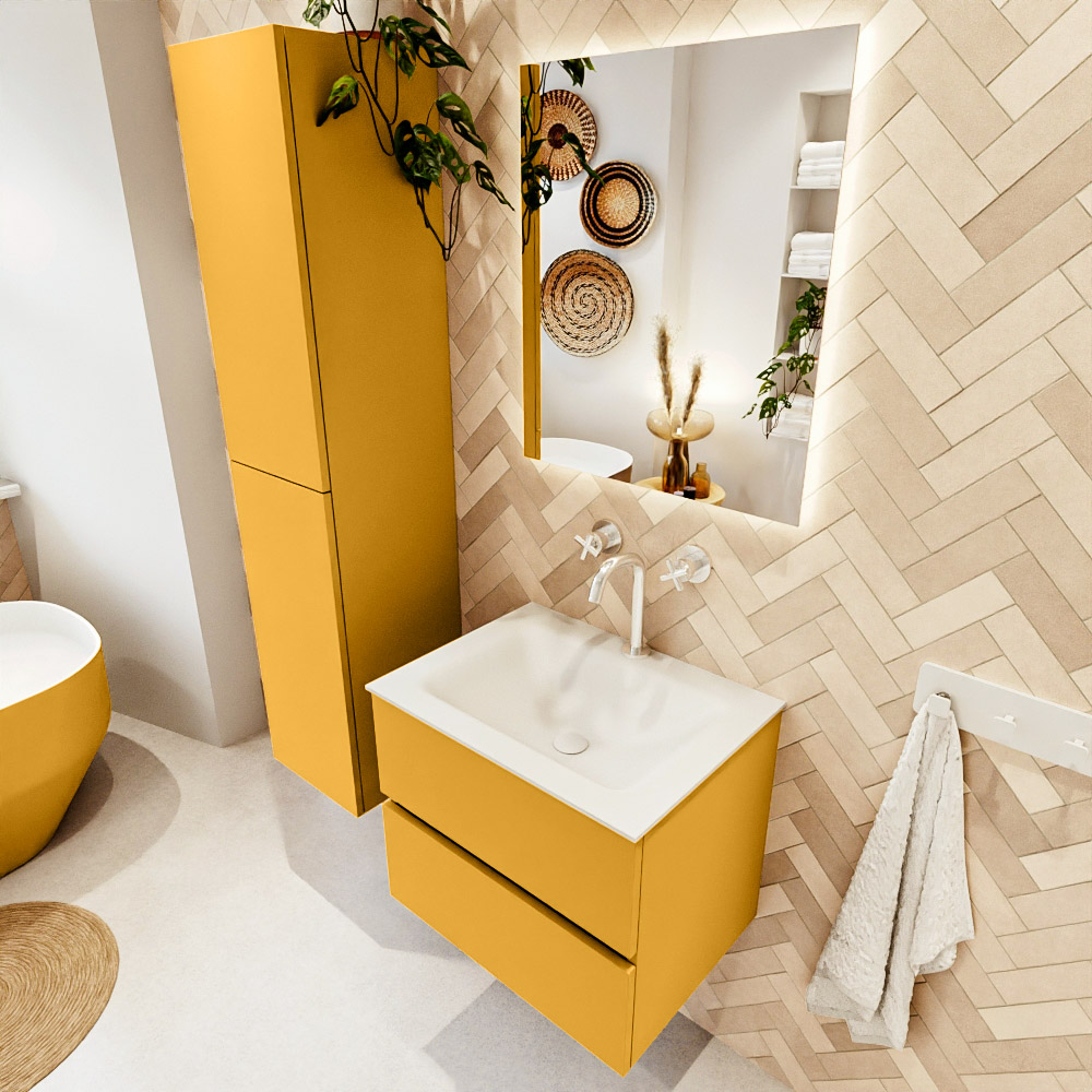 Ya sea que elija un color o un acabado de madera, un mueble de baño a medida, con o sin agujeros para grifos, el conjunto de muebles de baño Vica lo tiene todo. Con la serie Vica, puede elegir entre 3 modelos de lavabos: CLOUD y MOON en Solid Surface, con opciones de lavabo a la derecha, izquierda, en el medio o doble, y con o sin agujeros para grifos. También está el lavabo de cerámica DENIA con opciones en el medio y doble. El conjunto de muebles de baño Vica está disponible en una amplia gama de tamaños estándar, desde 60 cm hasta 200 cm, que aumentan en incrementos de 10 cm. El mueble de baño Vica está disponible en hasta 25 colores, incluyendo nuestros colores especiales Oro y Plata. Si no encuentra el tamaño o color ideal, siempre es posible hacer un pedido a medida. También puede coordinar su baño completo con columnas, bañeras, nichos y accesorios, todos en el mismo color. Con el conjunto de muebles de baño Vica, tendrá un mueble fantástico que completa su baño.