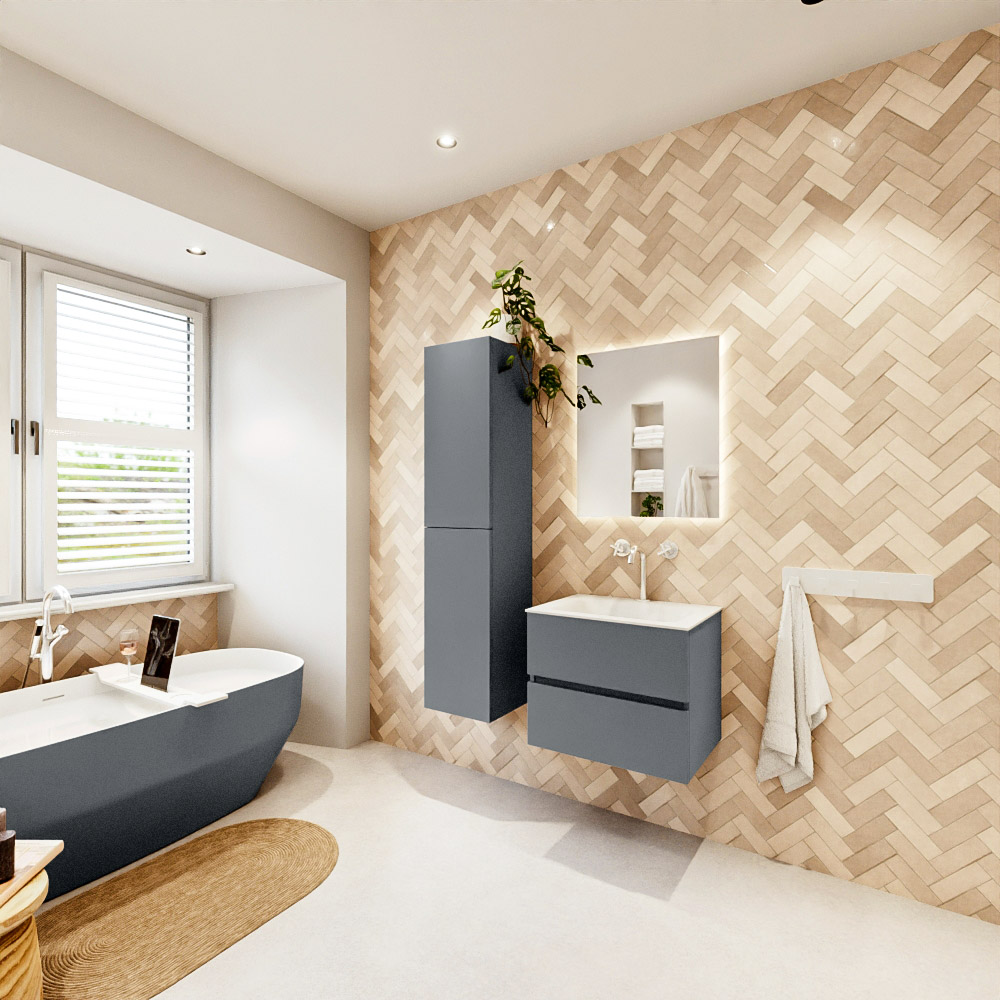 Ya sea que elija un color o un acabado de madera, un mueble de baño a medida, con o sin agujeros para grifos, el conjunto de muebles de baño Vica lo tiene todo. Con la serie Vica, puede elegir entre 3 modelos de lavabos: CLOUD y MOON en Solid Surface, con opciones de lavabo a la derecha, izquierda, en el medio o doble, y con o sin agujeros para grifos. También está el lavabo de cerámica DENIA con opciones en el medio y doble. El conjunto de muebles de baño Vica está disponible en una amplia gama de tamaños estándar, desde 60 cm hasta 200 cm, que aumentan en incrementos de 10 cm. El mueble de baño Vica está disponible en hasta 25 colores, incluyendo nuestros colores especiales Oro y Plata. Si no encuentra el tamaño o color ideal, siempre es posible hacer un pedido a medida. También puede coordinar su baño completo con columnas, bañeras, nichos y accesorios, todos en el mismo color. Con el conjunto de muebles de baño Vica, tendrá un mueble fantástico que completa su baño.