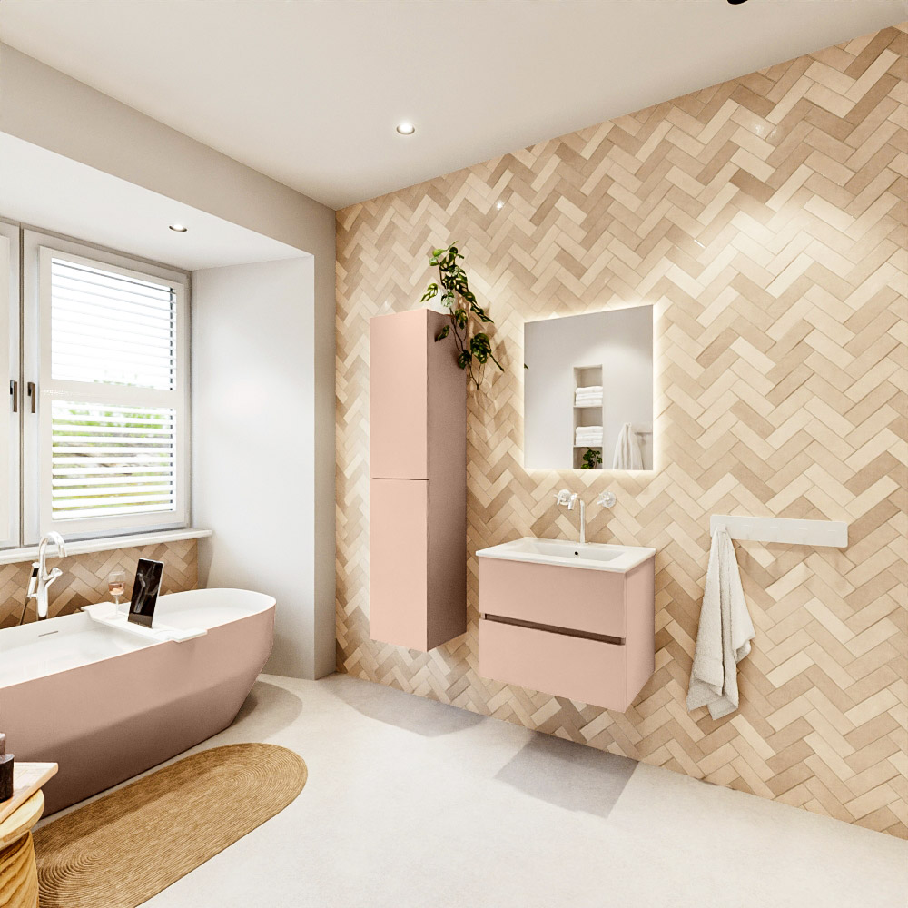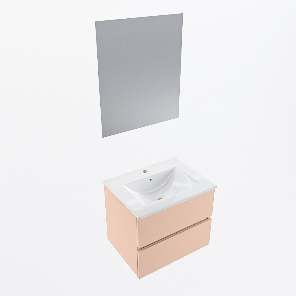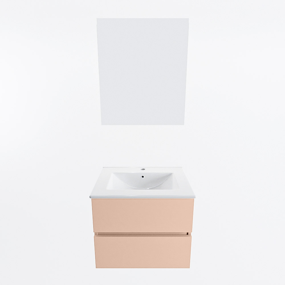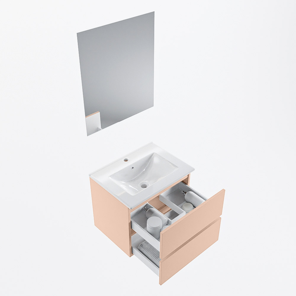 MONDIAZ VICA 60cm mueble de baño Rosee 2 cajones. Lavabo DENIA Centro 1 orificio color Blanco brillo con espejo LED.