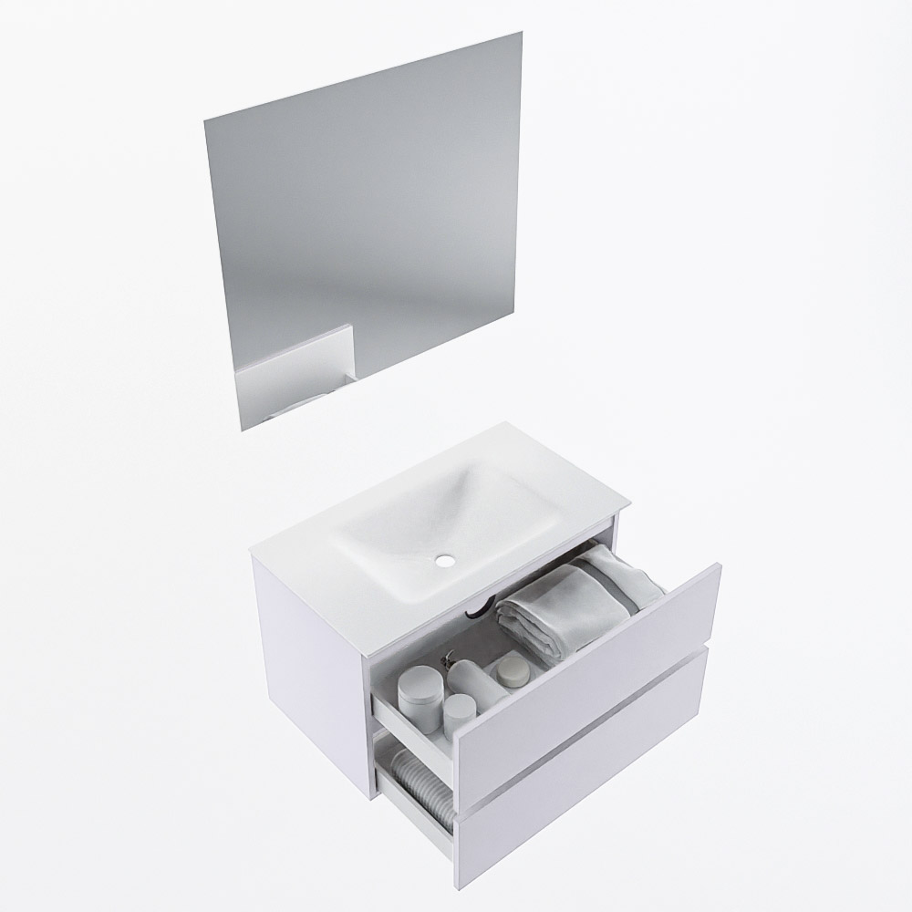 MONDIAZ VICA 80cm mueble de baño Cale 2 cajones. Lavabo CLOUD Centro 1 orificio color Talc con espejo LED.