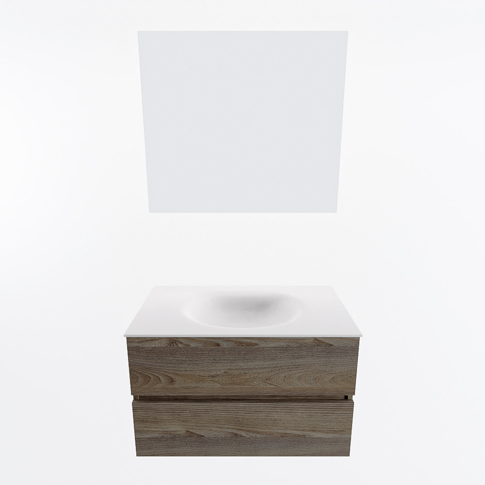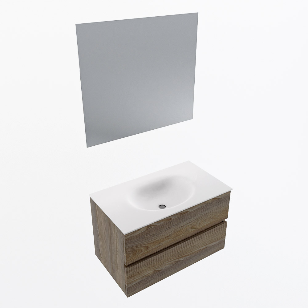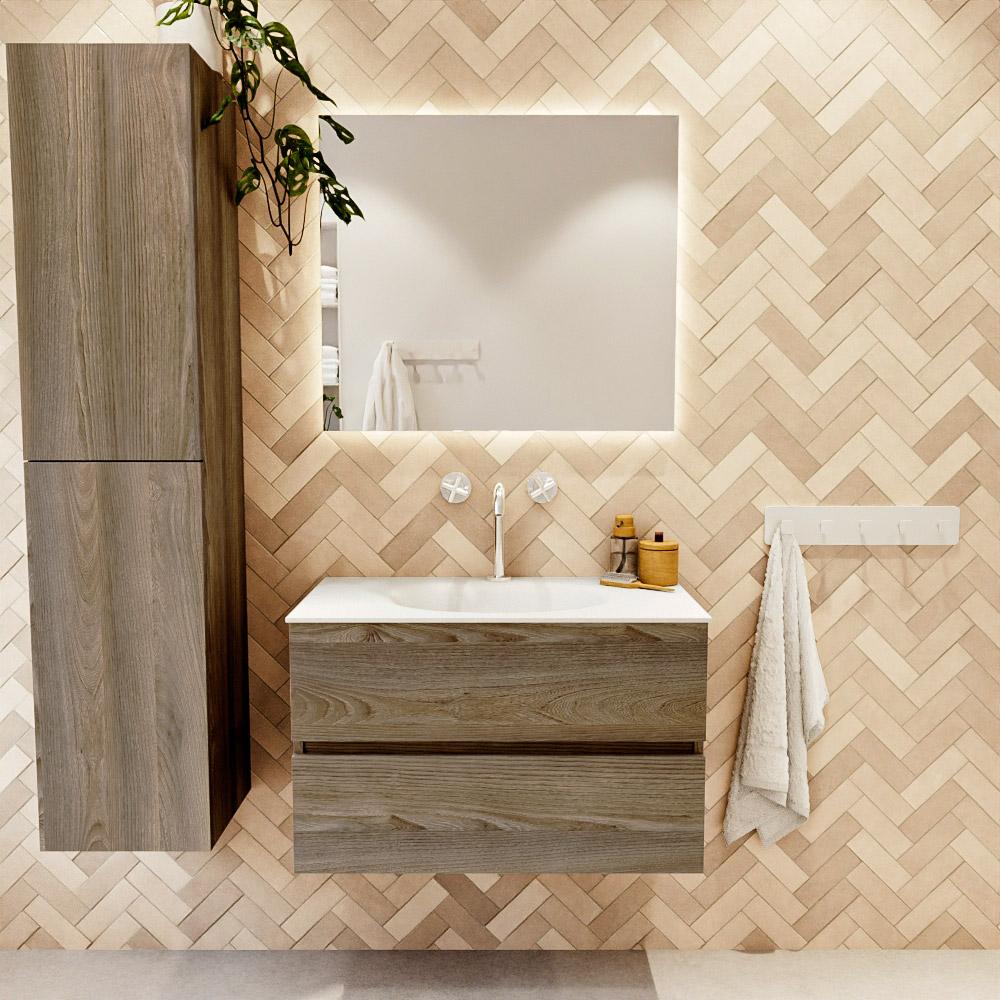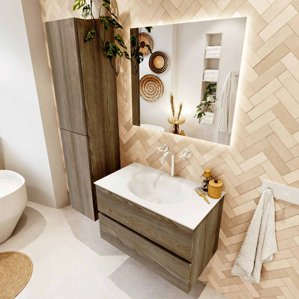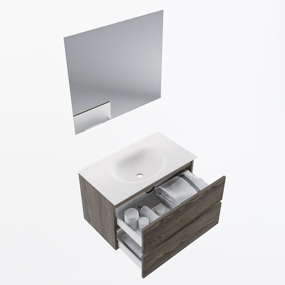 MONDIAZ VICA 80cm mueble de baño Dark Brown Grey 2 cajones. Lavabo MOON Centro 1 orificio color Talc con espejo LED.