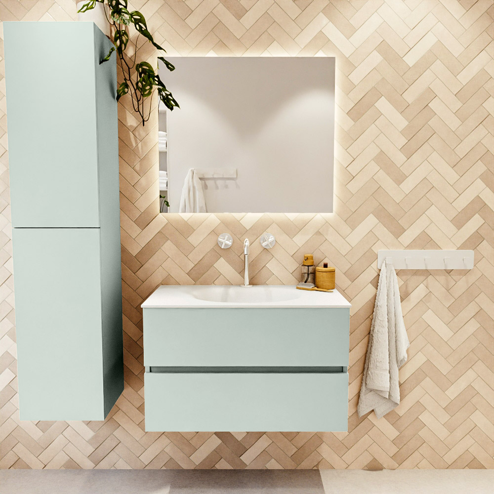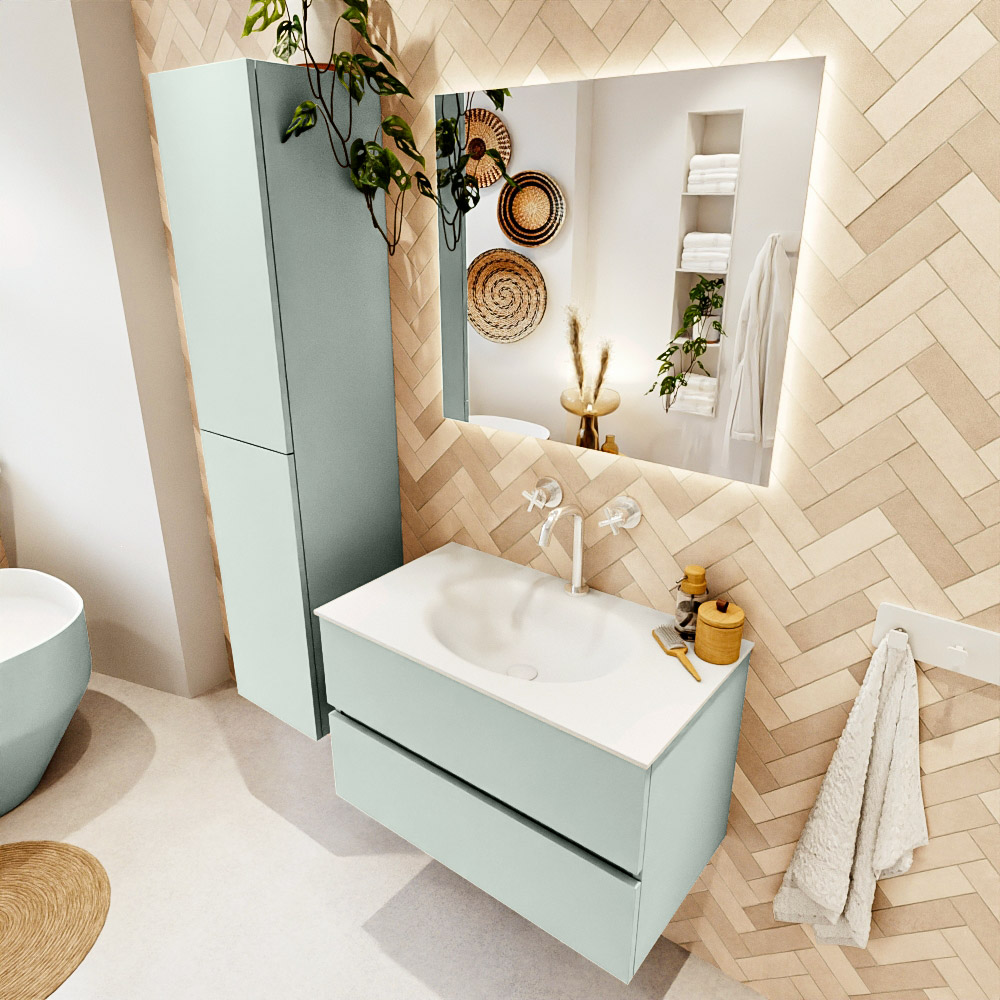 MONDIAZ VICA 80cm mueble de baño Greey 2 cajones. Lavabo MOON Centro 1 orificio, color Talc.