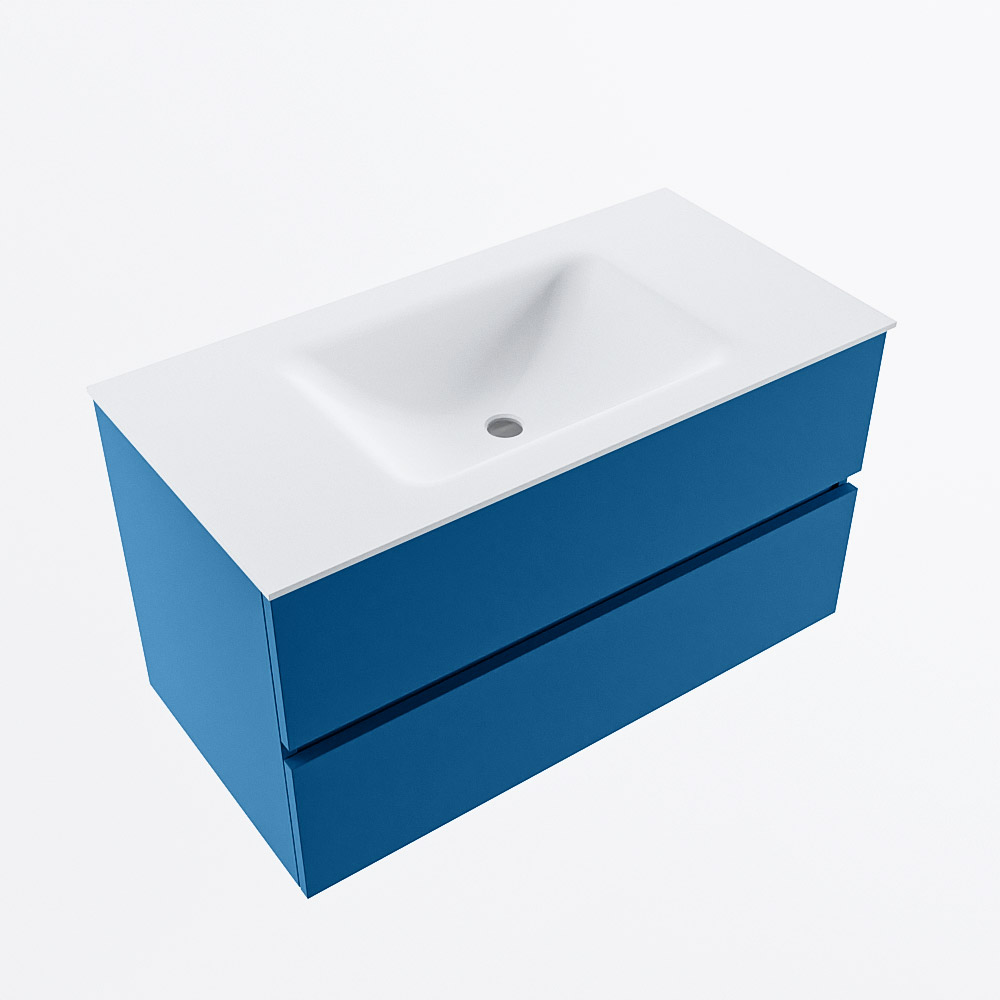 MONDIAZ VICA 90cm mueble de baño Jeans 2 cajones. Lavabo CLOUD Centro 1 orificio, color Talc.