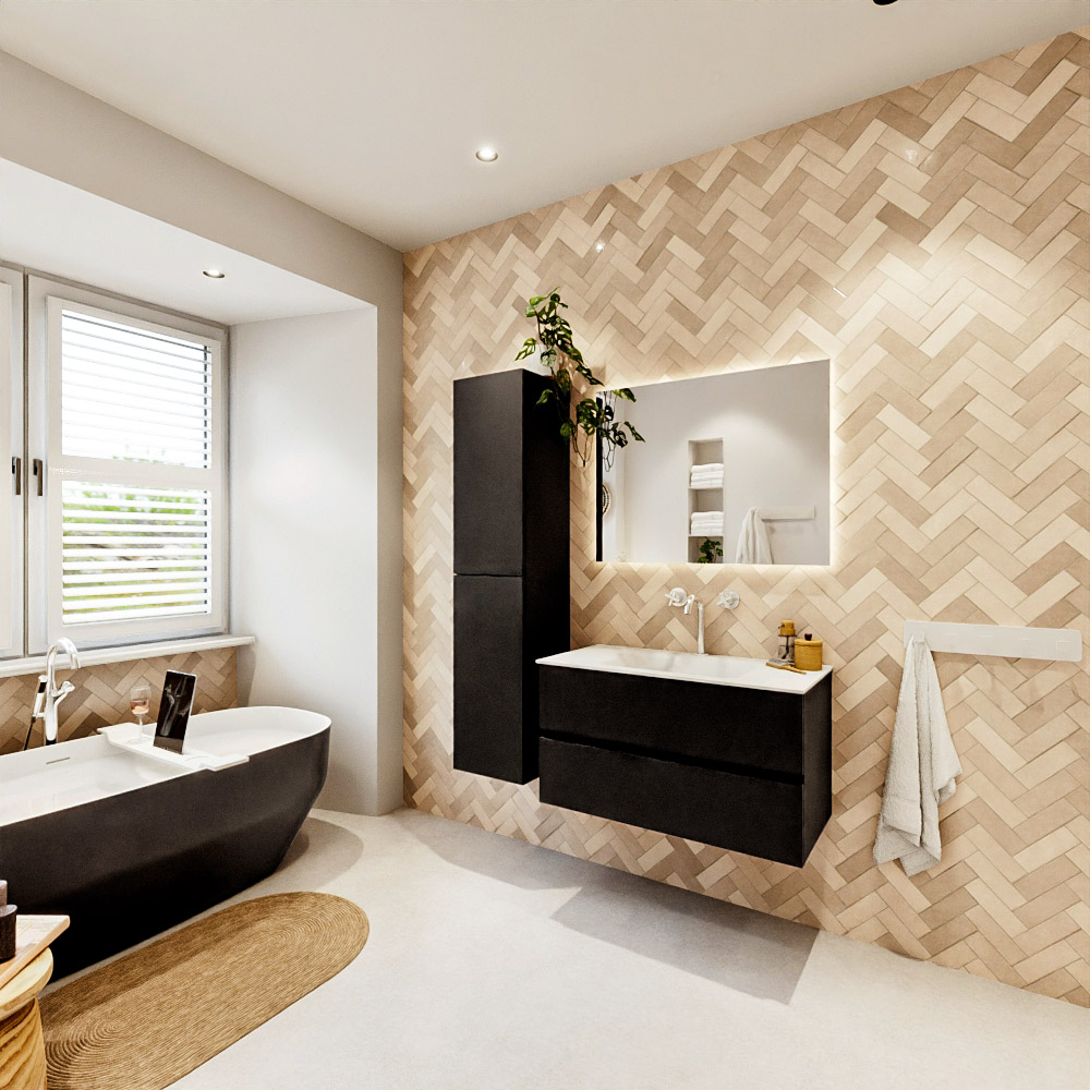Ya sea que elija un color o un acabado de madera, un mueble de baño a medida, con o sin agujeros para grifos, el conjunto de muebles de baño Vica lo tiene todo. Con la serie Vica, puede elegir entre 3 modelos de lavabos: CLOUD y MOON en Solid Surface, con opciones de lavabo a la derecha, izquierda, en el medio o doble, y con o sin agujeros para grifos. También está el lavabo de cerámica DENIA con opciones en el medio y doble. El conjunto de muebles de baño Vica está disponible en una amplia gama de tamaños estándar, desde 60 cm hasta 200 cm, que aumentan en incrementos de 10 cm. El mueble de baño Vica está disponible en hasta 25 colores, incluyendo nuestros colores especiales Oro y Plata. Si no encuentra el tamaño o color ideal, siempre es posible hacer un pedido a medida. También puede coordinar su baño completo con columnas, bañeras, nichos y accesorios, todos en el mismo color. Con el conjunto de muebles de baño Vica, tendrá un mueble fantástico que completa su baño.